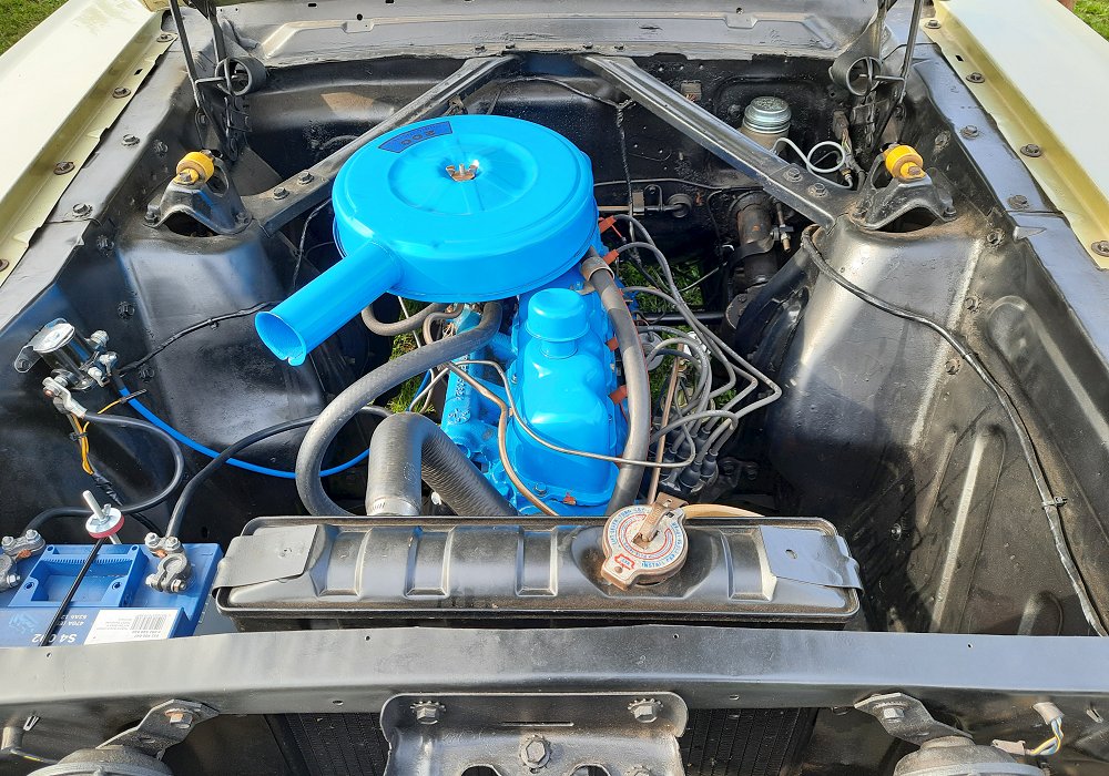 Chassis and suspension components were the same across the Mustang lineup, with coil springs at the front, leaf springs at the rear, and drum brakes at all four wheels. While the six-cylinder cars lacked the handling upgrades of the optional GT package, they still offered a comfortable ride and nimble character compared to larger American cars of the time.