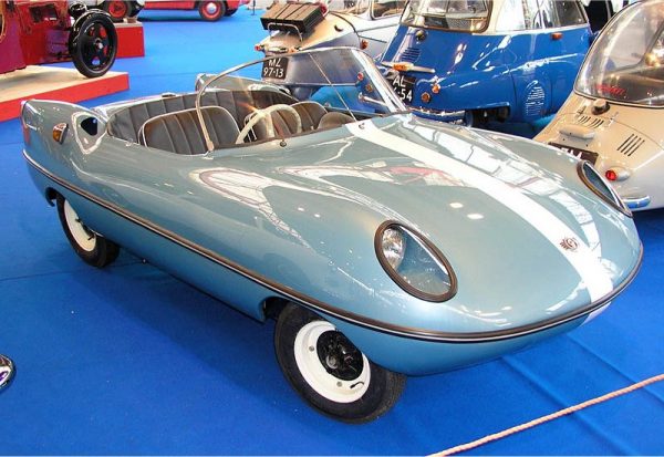 The Dart’s design was unlike anything else on the road in its day. Its fiberglass bodywork was rounded, curvaceous, and futuristic, with a pointed nose, protruding headlamps, and a boat-tail rear that gave it a sporty personality. Most famously, the Dart had no doors—drivers and passengers simply climbed over the low sides to get in, a feature that gave it both charm and notoriety. The body was light, aerodynamic, and very compact, making the Dart perfectly suited to city driving and fun runs along winding coastal roads.